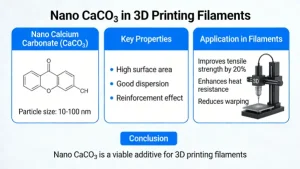 Surface modification is mandatory: Unmodified nano CaCO₃ is prone to severe agglomeration, which causes filament breakage, nozzle clogging, and degraded mechanical properties of printed parts.