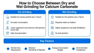 Dry grinding is the mainstream for conventional filler-grade CaCO₃ (cost-efficient, simple process), while wet grinding is the only viable industrial method for ultra-fine/nano CaCO₃ (D50 < 1 μm) with strict dispersion and particle size distribution requirements. A clear particle size boundary and application-driven performance demands are the key decision-making criteria, and the two processes have complementary advantages with almost no direct substitution in their core application scenarios.