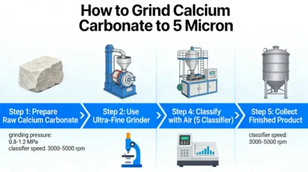 Below is a systematic, industrial-scale process for grinding CaCO₃ to 5μm, including equipment selection, process parameters, key controls, and precautions (lab-scale methods are also briefly included for R&D).