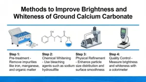 Improving the brightness & whiteness of ground calcium carbonate (GCC) mainly targets removing colored impurities (especially iron, manganese, organic matter) and optimizing particle morphology & dispersion. Below is the practical, industrial improvement plan:
