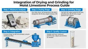 Integrating drying and grinding for moist limestone is a common requirement in industries such as cement production, flue gas desulfurization (FGD), and chemical processing. Moisture in limestone can hinder efficient grinding and cause operational issues like clogging or reduced throughput. To address this, combined drying-grinding systems are employed. Below are the main approaches and technologies used: