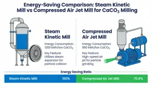 Yes: Steam kinetic mill (70–80% energy savings for ultra-fine CaCO₃)