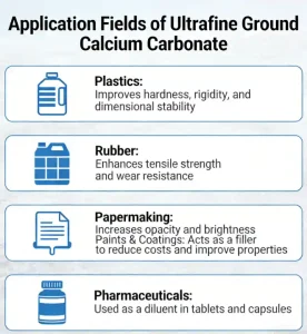 | Electronics Packaging | Thermal/electrical insulating filler | High-purity ultrafine CaCO₃ improves dielectric properties |