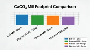 | Ring Roller Mill | 30–40% | Compact vertical multi-layer structure; minimal auxiliary equipment; smallest floor space for ultrafine CaCO₃ production. |