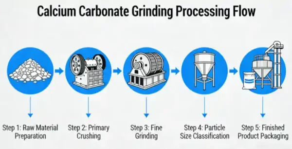 The crushing and grinding process for calcium carbonate (CaCO₃) varies depending on the raw material type—ground calcium carbonate (GCC) or precipitated calcium carbonate (PCC)—the target fineness (standard, ultrafine, or nano-grade), and the end-use application (e.g., plastics, coatings, paper, rubber, food, or pharmaceuticals). Below is a detailed description of the typical dry ultrafine grinding process for ground calcium carbonate (GCC), which represents the most common industrial approach.